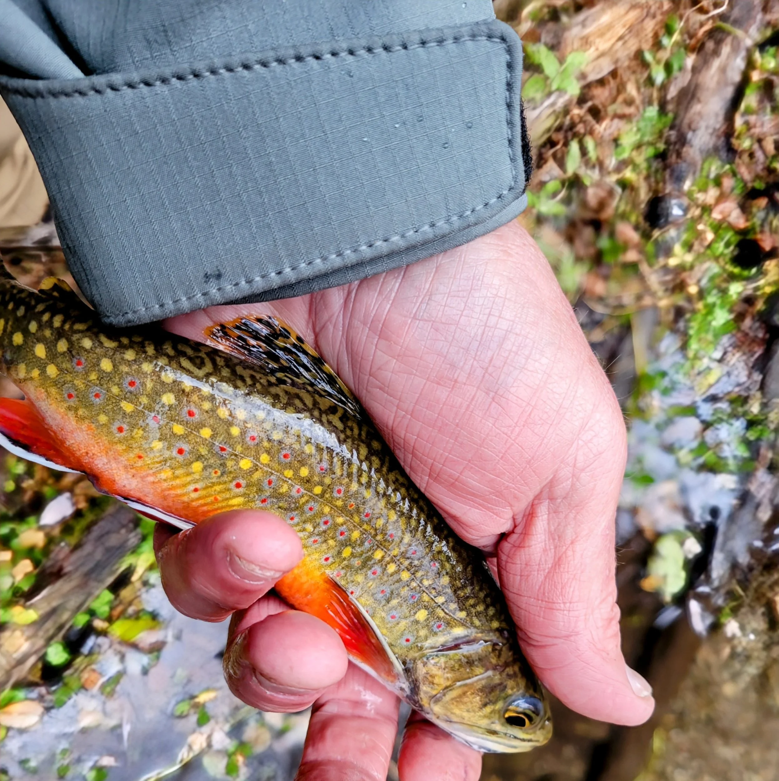 The trail along the lake is fairly easy to navigate; however, getting down to the water’s edge requires the sure footing and agility of a Mountain Goat. After hiking for a few minutes, I could finally see the inlet clearly. From a distance, it appeared easily accessible, but as I drew closer, I discovered it was marshy and densely overgrown with vegetation. Wearing only my wading socks, I decided to stick to the trail and follow the creek for several miles instead. The creek was narrow, and the tree canopy hung very low, making casting a real challenge. Spotting pools tucked within the pocket water, I carefully belly-crawled my way closer so as not to spook the fish. I was grateful that I had applied bug spray earlier, as I could only imagine the number of bites I might have gotten without it. Despite working my way upstream for nearly three hours, I hadn’t seen a single fish. I questioned everything—fly patterns, fly size, tippet size, perhaps the water temperature was too high or maybe there had been a recent fish kill. What was I missing? Then it dawned on me: it was late October, and the brook trout might be spawning.